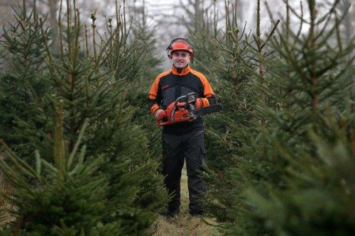 Pracownik leśny Dania praca sezonowa przy choinkach – wycinka drzewek w Kolding